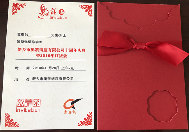 新鄉(xiāng)市奧凱鋼瓶有限公司十周年慶典暨2019年訂貨會(huì)邀請函 Time:[--]